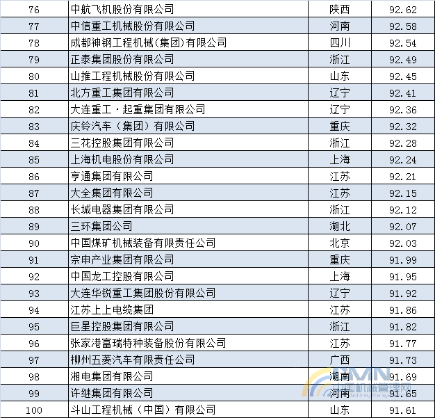 2013年中國機(jī)械500強(qiáng)排名(1-100)