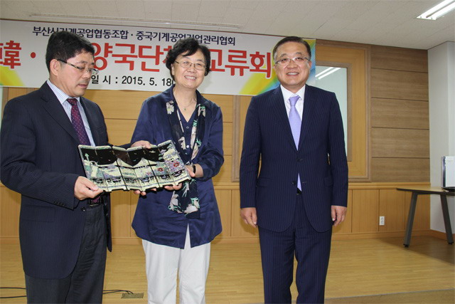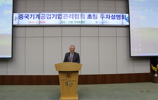 機械組合的發(fā)展和對外合作交流得到韓國釜山市政府的支持,在機械組合到訪北京時,釜山市政府行政次官等隨同參加中韓交流活動。此次去釜山,釜山市政府在2015年5月19日組織有關部門人員在政府大樓報告廳舉辦歡迎儀式,釜山市副市長趙敦榮會見了中機企協(xié)交流團成員。