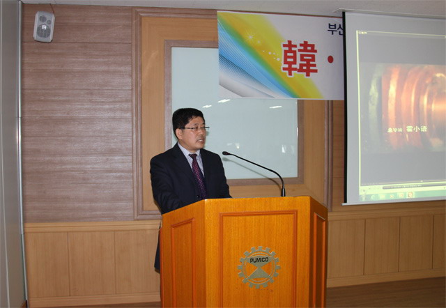 在致詞中歡迎中方企業(yè)家來韓合作交流,并介紹釜山的地理優(yōu)勢和制造業(yè)能力,他說釜山的機械產(chǎn)品產(chǎn)值占韓國整體機械工業(yè)55%,有7萬多家機械及相關企業(yè)在釜山及周邊地區(qū),是韓國機械和機械加工產(chǎn)業(yè)的最大集散地。強調(diào)中韓企業(yè)合作潛力巨大,中國市場前景廣闊,中國經(jīng)濟發(fā)展令世人羨慕,希望通過中韓兩國政府和行業(yè)組織的密切合作,促進兩國企業(yè)的快速發(fā)展。