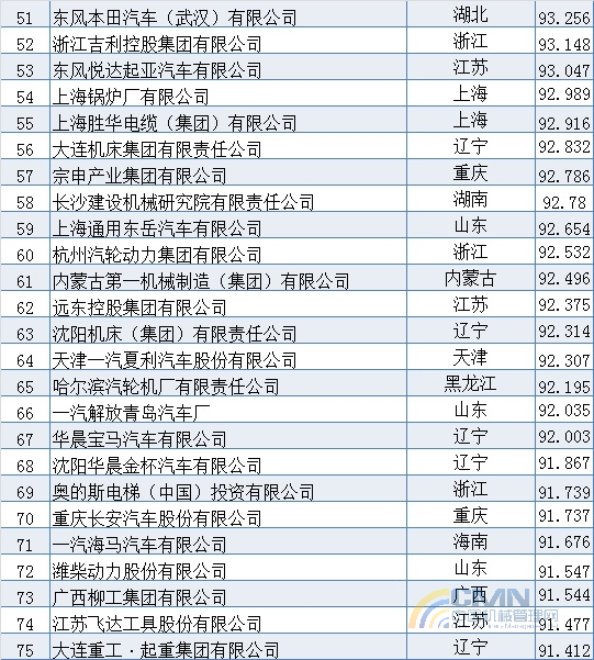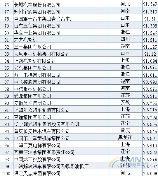 2007年中國機(jī)械500強(qiáng)排名(1-100)
