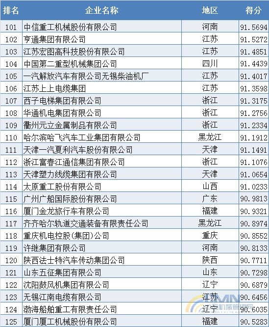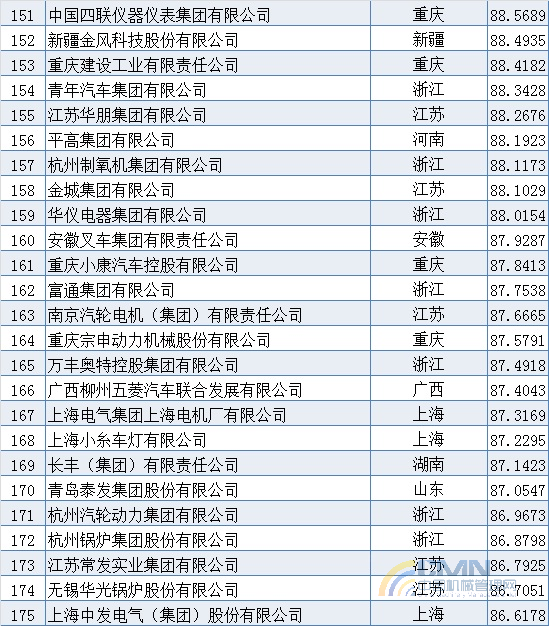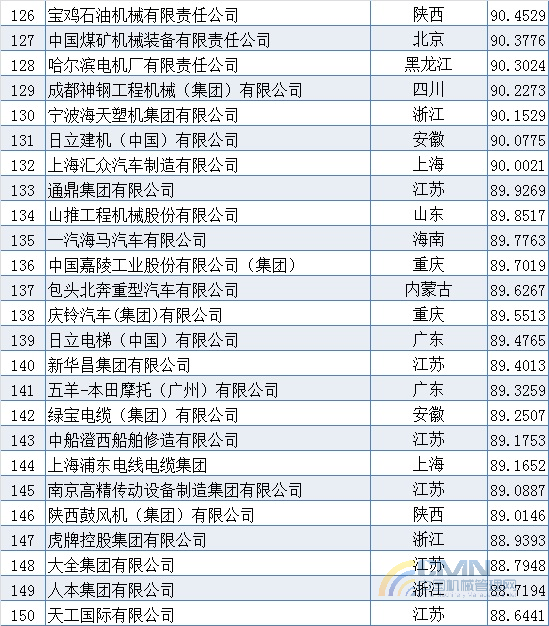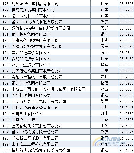 2009年中國(guó)機(jī)械500強(qiáng)排名(101-200)