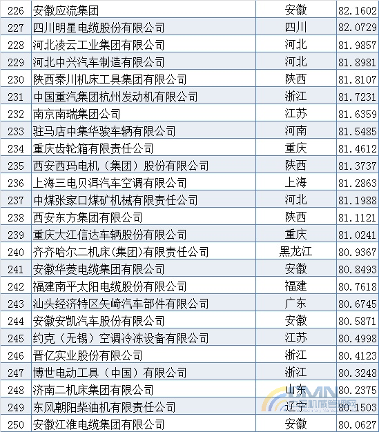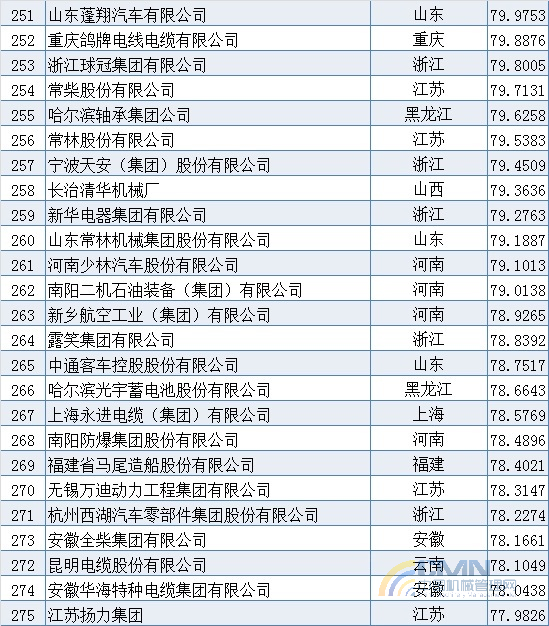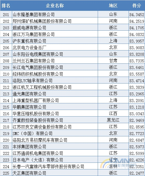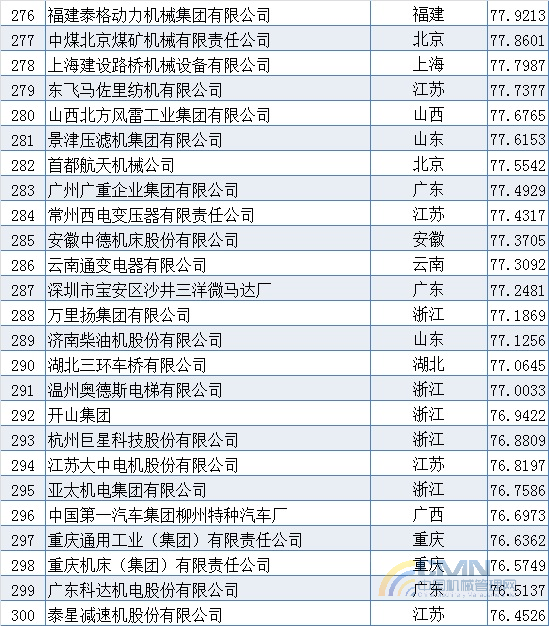 2009年中國(guó)機(jī)械500強(qiáng)排名(201-300)
