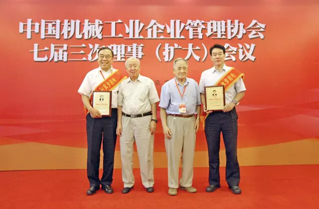原機(jī)械工業(yè)部部長何光遠(yuǎn)、老領(lǐng)導(dǎo)孫祖梅向全國機(jī)械工業(yè)優(yōu)秀企業(yè)家頒獎