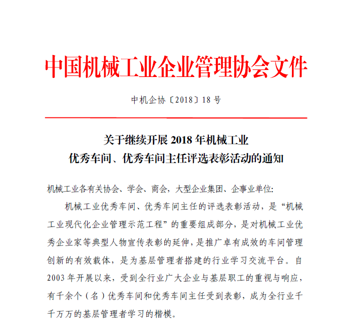 (四)中機(jī)企協(xié)每年將向榮獲優(yōu)秀車間和優(yōu)秀車間主任稱號的集體和個人進(jìn)行授牌表彰。
