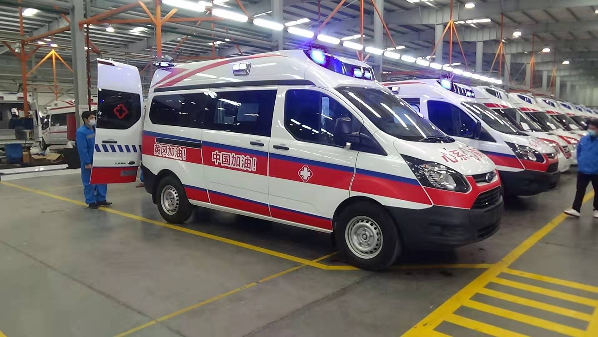 2月2日,江鈴汽車向武漢捐贈(zèng)的10輛福特全順負(fù)壓監(jiān)護(hù)型救護(hù)車開(kāi)始陸續(xù)下線發(fā)車,投入抗疫一線使用,這是全國(guó)首批交付武漢急救中心的負(fù)壓救護(hù)車,將用于武漢火神山醫(yī)院轉(zhuǎn)運(yùn)病人。